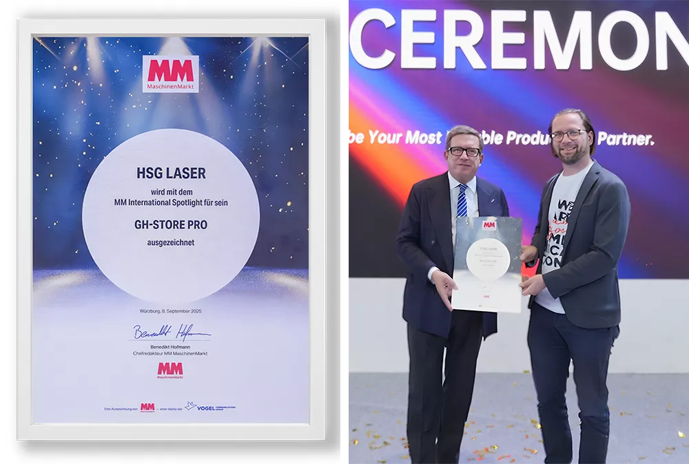 During the show, HSG Laser was honored with the “International Spotlight” honor presented by the Chief Editor of MM MaschinenMarkt Germany, in recognition of the GH-Store Pro Premium Intelligent Laser Automation System, a breakthrough innovation that embodies the company’s vision of smart, automated, and connected manufacturing. The honor marks HSG Laser as one of the most outstanding exhibitors at this year’s event.